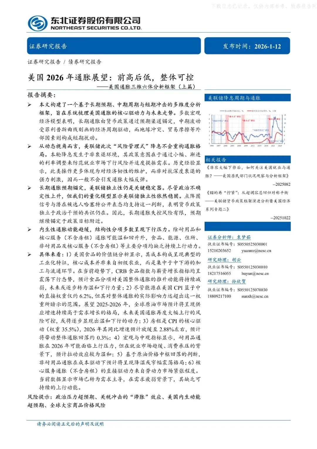 美国通胀三维六体分析框架(上篇)-美国2026年通胀展望:前高后低,整体可控-260112-东北证券-30页