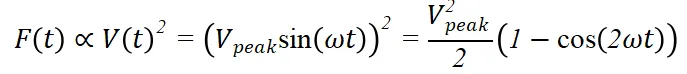 从公式可以看出,电容器薄膜受到的静电力是一个包含直流分量和两倍于电源频率