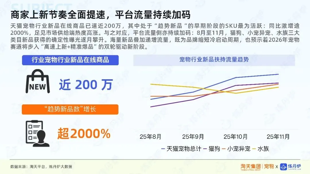 报告还强调了宠物行业智能化趋势,智能喂食器、健康监测设备等成为市场新宠。同时,小宠、异宠及水族市场增长显著,消费者对饲养环境和健康管理的关注度不断提升。在新品策略上,报告建议商家利用平台资源,通过新品试销、心智橱窗等手段加速新品孵化与市场推广,以适应快速变化的消费需求。