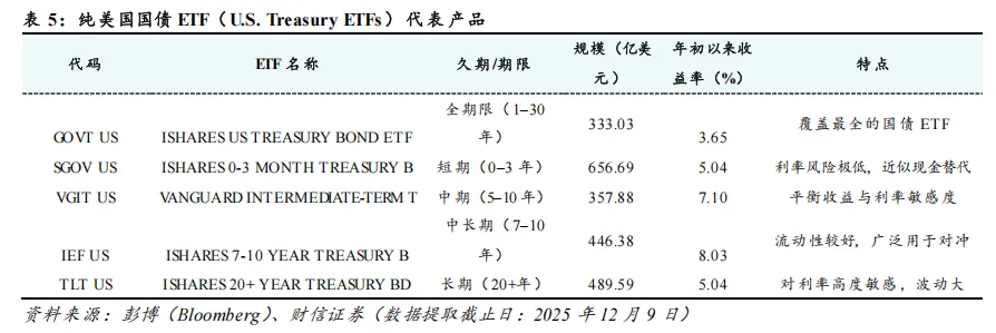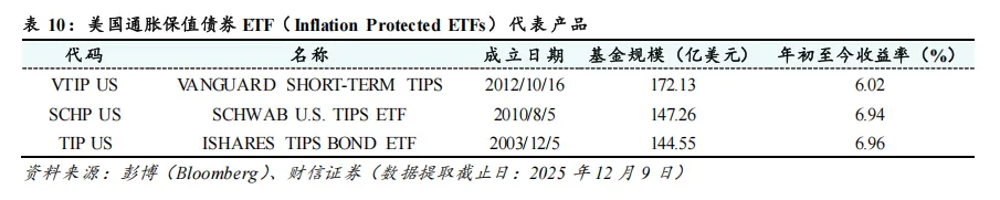 代表产品包括全期限的TIP(覆盖短、中、长期)和短期的VTIP(投资剩余期限小于5年),分别匹配不同久期和利率风险偏好。
