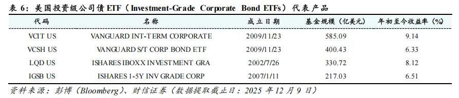 1、投资级公司债ETF(Investment-Grade Corporate Bond ETFs)