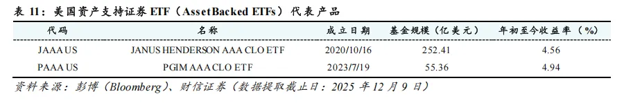 代表产品JANUS HENDERSON AAA CLO ETF(JAAA)由骏利亨德森投资(Janus Henderson)于2020年发行,底层资产为AAA级CLO,且持仓高度分散(超400只CLO),前五大持仓权重均不超过1.11%,成立以来的年化回报约为4.67%,适合作为现金增强或防御性固收配置。
