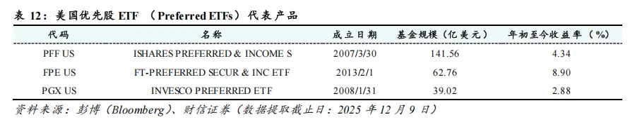 代表产品 iShares Preferred and Income Securities ETF(PFF)是目前美国规模最大的优先股ETF,主要投资于金融机构发行的高股息优先证券。其优势在于流动性强、收益稳定且按月派息,2025年股息率约为6.5%;但同时产品倾向投资BBB级为主的借款人且行业高度集中于金融板块,面临一定的信用风险。