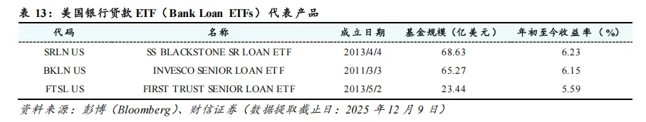 代表产品SPDR Blackstone Senior Loan ETF(SRLN)是由State Street与Blackstone于2013年合作推出的主动管理型银行贷款ETF,主要投资于高信用质量的高级担保浮动利率杠杆贷款,年初至今收益率约为6.23%,规模约68.63亿美元,久期集中在2-7年,产品倾向配置B及B-评级为主的借款人,避免过度下沉至CCC级,相较被动型产品(如BKLN)更强调下行风险控制。