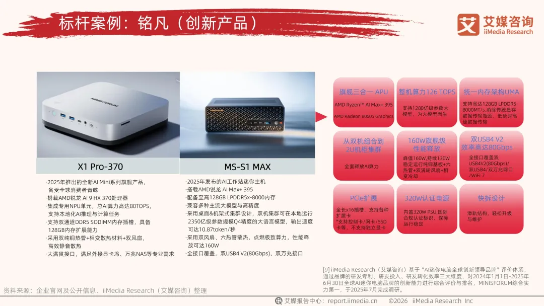 作为AI迷你主机全球创新领导品牌,MINISFORUM铭凡以前瞻性产品响应AI算力发展需求。其通过集成AMD等主流厂商的尖端处理器,并将多机高速互联、大模型本地部署等前沿AI能力深度融入产品,持续引领迷你主机向专业AI计算平台演进。