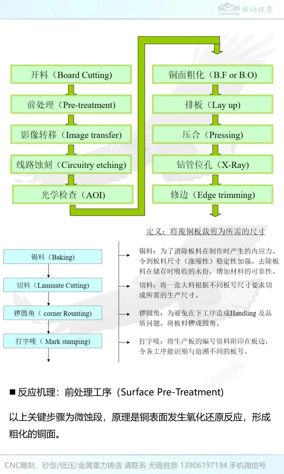 定义:利用板料基材,通过铜层图形蚀刻,各层板料图形及覆铜膜对位,在受控热力的配合下形成层间压合,经修边处理后完成内层制作流程,为外层线路之间的导通提供依据。