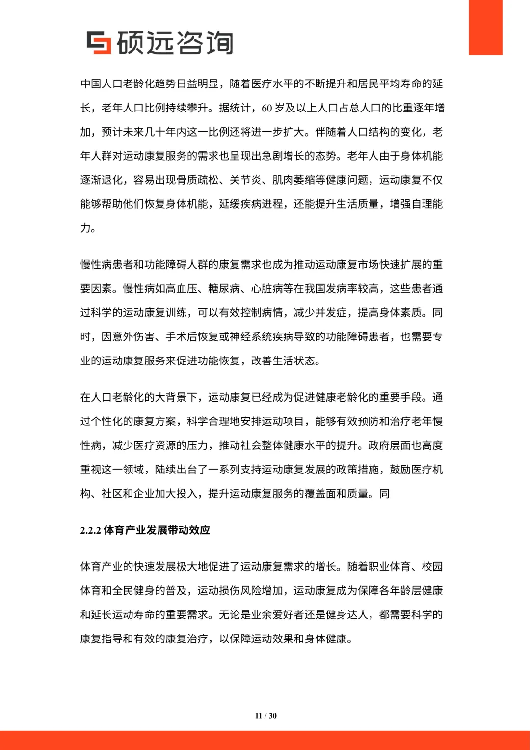 运动康复是通过科学方法帮助各类人群恢复和提升运动功能,预防运动损伤,并促进整体健康。其服务内容涵盖评估、治疗、功能训练、疼痛管理、营养指导及心理辅导等,注重个性化方案和多样化模式,以实现运动功能的优化与长期维护。行业涉及多个环节,包括运动损伤的预防、评估、治疗、功能训练、效果评估及后续维护,形成完整的康复链条。参与方包括康复医疗机构、体育训练中心、运动康复师、设备制造商、营养师及科研机构,各方协同合作,推动行业发展。中国运动康复行业起始于20世纪90年代末至21世纪初,随着体育运动普及和全民健身推进,需求逐渐增长。早期服务规模有限,主要集中在专业机构,技术设备较为落后。随着科技发展和政策支持,现代康复技术逐步引入,服务内容不断丰富,体系日趋完善。进入21世纪后,全民健身和“健康中国”战略推动行业快速发展。北京奥运会的举办促进了运动医学和康复技术的进步,相关成果应用于大众领域,提升了行业水平。行业已形成系统化服务体系,服务范围广泛,参与主体多元,市场竞争加剧,信息化和专业化程度不断提高。