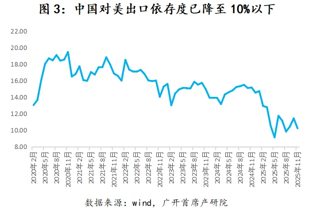 中国出口有望继续平稳增长。2025年,尽管面临全球需求放缓、贸易环境恶化等挑战,尤其是美国加征高额“对等关税”带来的严峻冲击,出口依然取得了超预期表现,贸易顺差更是首度突破1万亿美元,为稳增长作出了贡献。全年出口同比增长5.5%(美元计价);出口对GDP的贡献占32.7%,拉动1.64个百分点。2026年,我国出口有望保持平稳增长势头。从外部环境看,存在一系列有利因素。2026年全球贸易环境有望得到一定修复,中美经贸关系将呈总体缓和态势,全球货币财政双宽松背景下海外需求整体提振,多边和区域合作走向深化,“南南贸易”重要性进一步凸显等。从自身看,也存在诸多积极条件。包括:中国对美国市场依赖已降至9.55%,对东盟、欧盟等市场出口增长保持较快增速,全产业链的竞争优势和韧性将展现得越来越充分,机电产品(占比超六成)和高新技术产品(占比超四分之一)在出口中占比越来越高等,更多向一带一路国家出口投资品。预计2026年出口增速或保持在3%-4%,进口增速为2%。净出口对全年经济增长贡献率为20%,拉动GDP增长1个百分点。
