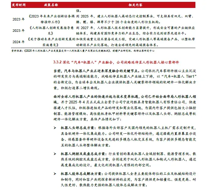 主要逻辑#3:公司机器人关键部件解决方案布局完善,进军汽车&机器人Tier1。2025 年公司发布的机器人AI 头部总成、基于英伟达Jetson Thor 芯片的全域控制器、新一代机器人能源管理产品以及胸腔与底盘总成、传感器等机器人解决方案,形成完善的产品矩阵体系。