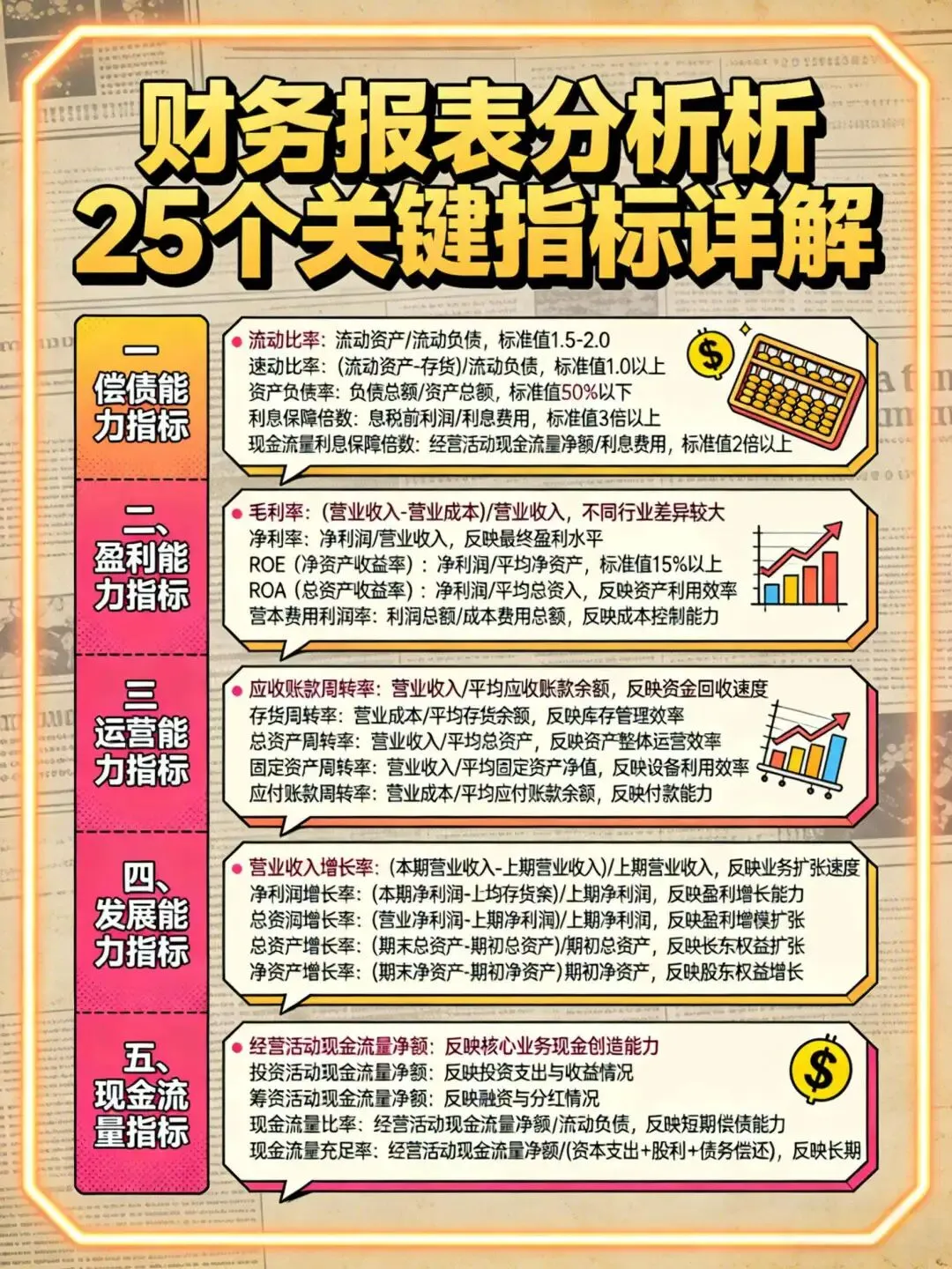 ?财务报表分析利器!25个关键指标,助力老板清晰了解公司运营状况!?