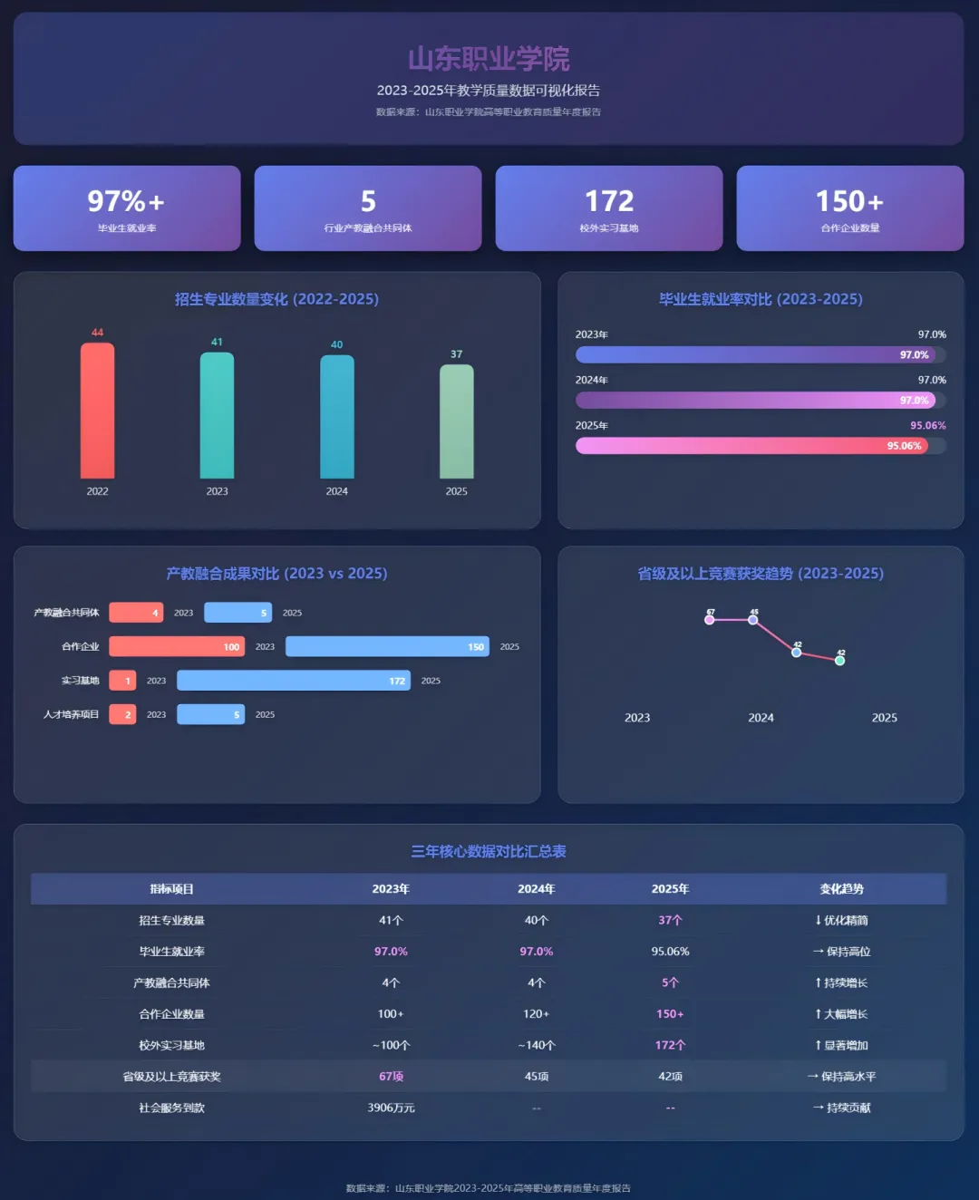看完这三年的数据,作为一个教育从业者,我必须说:山东职业学院的发展轨迹非常清晰,就是朝着"高水平、有特色、国际化"的目标一路狂奔。