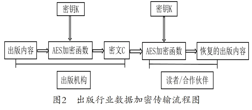 出版企业因涉及大量敏感信息,必须完善数据安全防护策略。其一,在技术层面,采用先进的加密技术,如AES(Advanced Encryption Standard)加密算法,对数据存储和传输过程进行加密,具体加密流程如图2所示。例如对于未出版书稿内容、作者的个人信息以及读者的购买记录等敏感数据,无论是存储在本地服务器还是在网络传输过程中,都进行高强度加密,确保数据的保密性。《中华人民共和国网络安全法》规定,企业有责任保护用户信息安全,加密措施是履行这一责任的重要手段。其二,在数据访问控制方面,建立严格的权限管理系统,根据员工的岗位角色和工作需要,分配不同的数据访问权限,比如编辑人员只能访问与书稿相关的数据,销售部门只能查看销售数据,而财务人员则有权限处理与财务相关的数据,严禁越权访问。[8]与此同时,定期对数据系统进行安全漏洞扫描和渗透测试,及时发现并修复安全隐患,例如,出版企业每月进行一次安全漏洞扫描,每季度进行一次渗透测试,在一次扫描中发现了数据库的一个安全漏洞,及时进行修复,避免可能的数据泄露风险,一旦发生数据泄露等安全事件,能够迅速采取措施,降低损失,并按照相关法律法规要求及时通知相关方。
