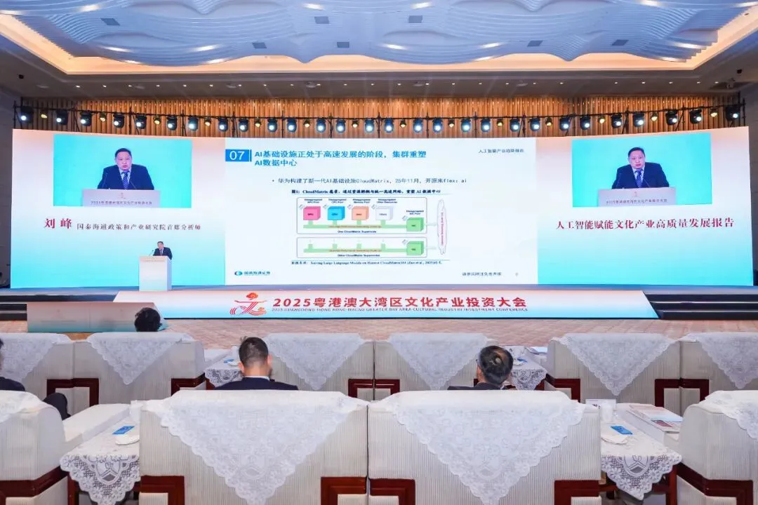 在2025粤港澳大湾区文化产业投资大会主题大会上,国泰海通证券政策和产业研究院首席分析师刘峰发布了《人工智能赋能文化产业高质量发展报告》。
