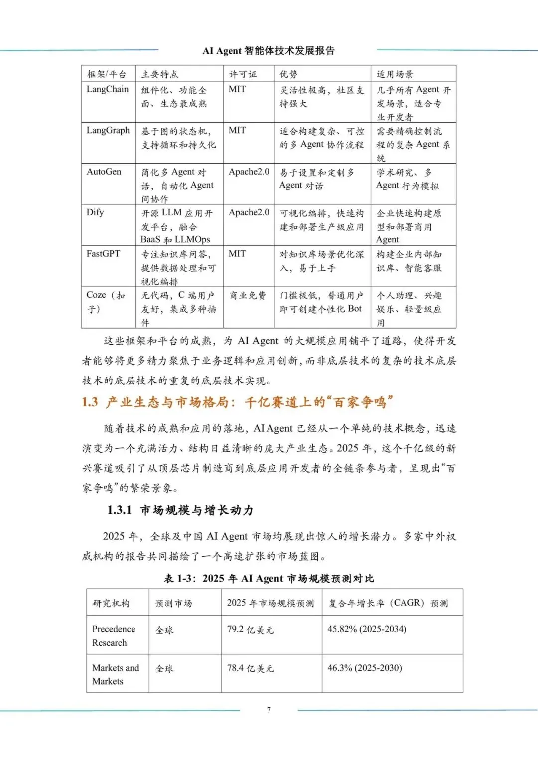 报告详细梳理了国际主流的开源开发框架,如LangChain、AutoGen、CrewAI等,它们已成为构建复杂AI应用的重要工具。同时,国产平台如Dify、FastGPT、Coze等也在快速崛起,提供了更贴合本土需求的全流程或低代码解决方案。报告强调,开发者应根据具体场景、团队技能和集成需求来选择适配的工具,不存在通用的最佳方案。