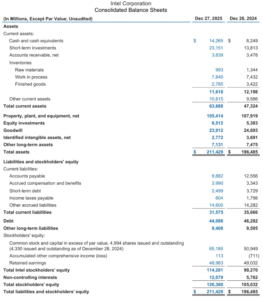 WIP 的增加是典型的"产线爬坡"信号。工厂正在全速运转生产 18A 晶圆,但还没变成成品(Finished Goods 下降了)。这意味着 Intel 正在囤积未来的"高价弹药"。