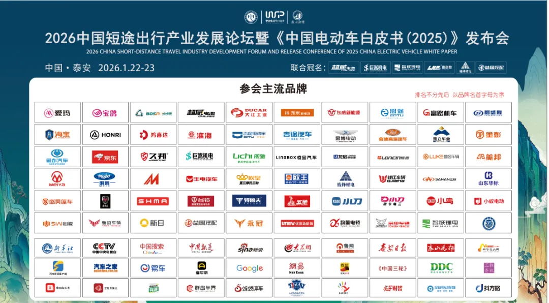 1月23日,由中国电动车产业发展研究会主办,纵横方略、抖方略承办,中国电动车白皮书编委会协办,超威电池、巨嵩机电、智联锂电、路耐驰锂电,钱锋锂电联合冠名的「无界·共生」2026第五届中国短途出行产业发展论坛暨《2025中国电动车白皮书》发布会在中国·泰安隆重举行。