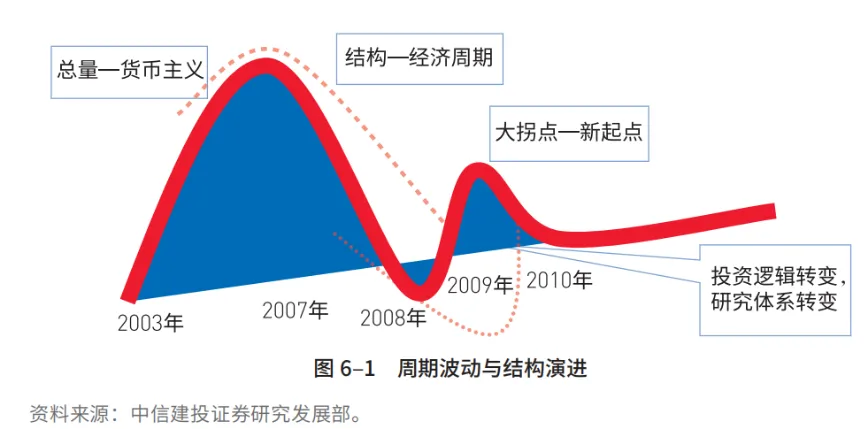 周金涛理论的精髓在于“嵌套”。他认为,一个完整的康波周期包含四个阶段:回升、繁荣、衰退、萧条。而每一个康波阶段,又由数个朱格拉周期构成;每一个朱格拉周期,再包含三个左右的基钦周期。重大历史性机遇和风险,往往出现在不同层级的周期产生向上或向下共振的时刻。而特维德在《逃不开的经济周期》一书中,则特别强调了不同周期之间的“共振效应”。