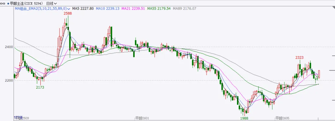 截至前一个交易日收盘,甲醇走强,主力收阳线。