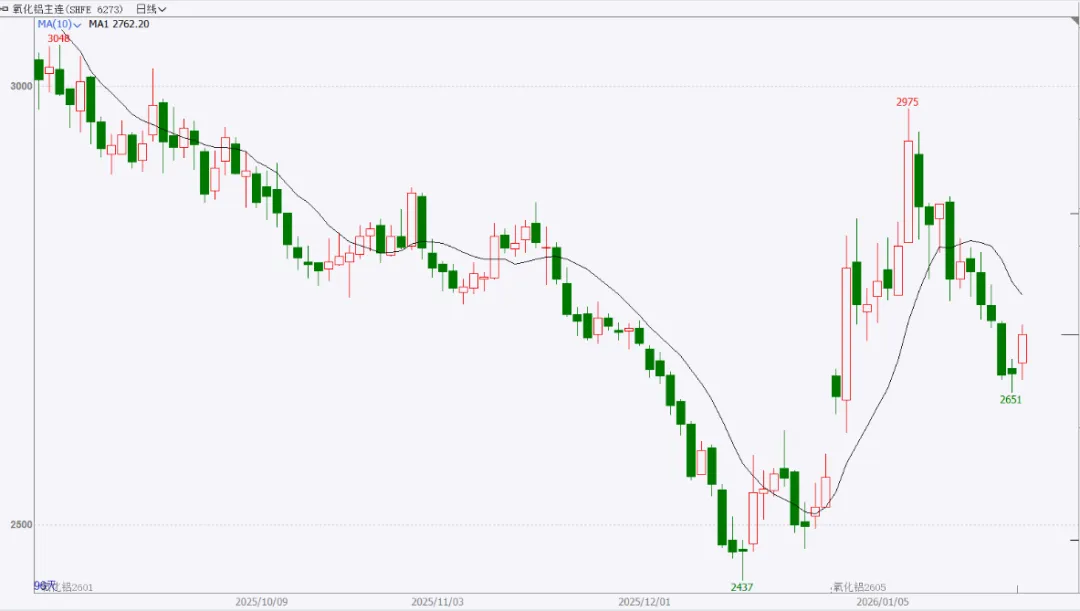 截至前一个交易日收盘,氧化铝主力合约日内横盘震荡,整体延续回调。