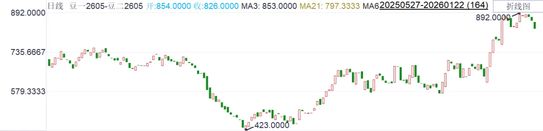 操作策略:关注多豆一空豆二05的跨品种套利机会,同时重点关注国产大豆拍卖数量和南美大豆天气状况。若二者差价跌破700取消关注。