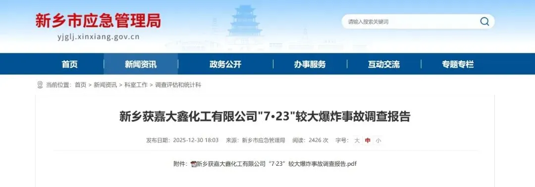 案例学安全|新乡获嘉大鑫化工有限公司“7·23”较大爆炸事故调查