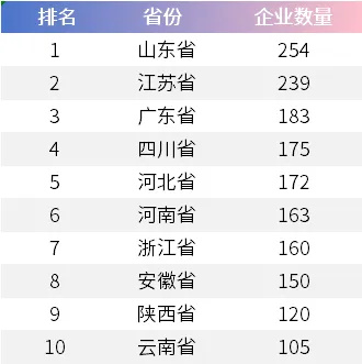 区域分布不均:东部沿海(山东、江苏、广东)与西部中心省份(四川、陕西)形成双极格局。