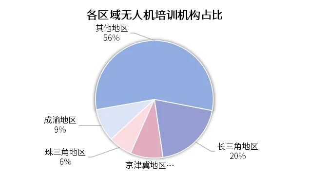 ·长三角地区以20%的占比位居各重点城市群之首,体现了该区域在经济活力、科技资源和市场需求上的优势,成为无人机培训的核心聚集区。