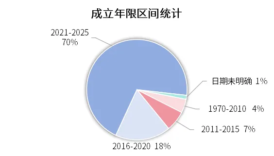 行业成长期特征:近5年成立的企业占比70%,新进入者持续增加。