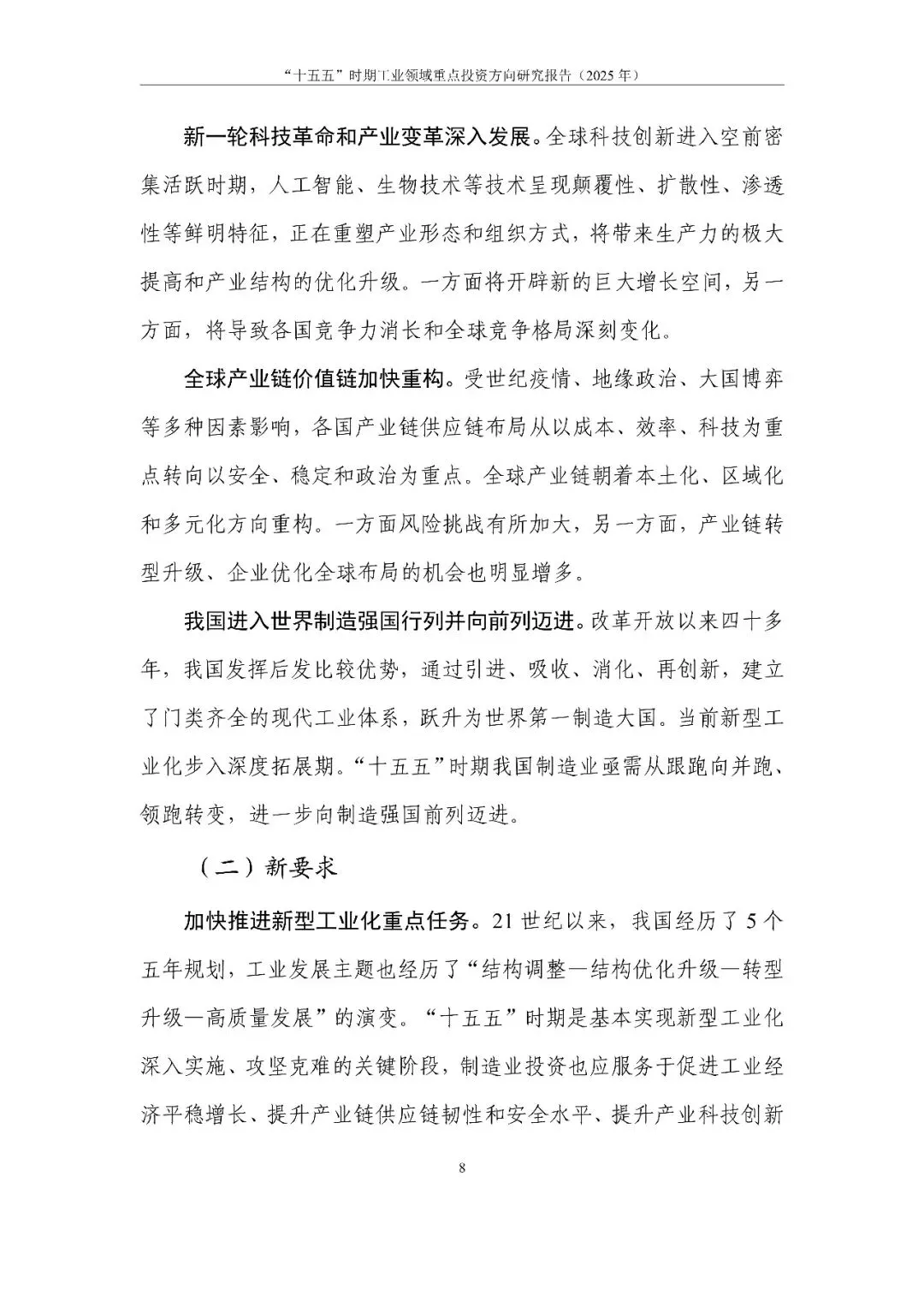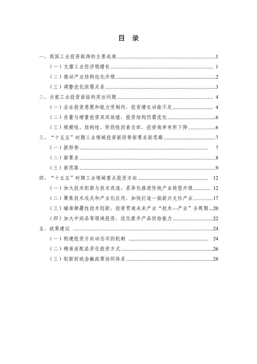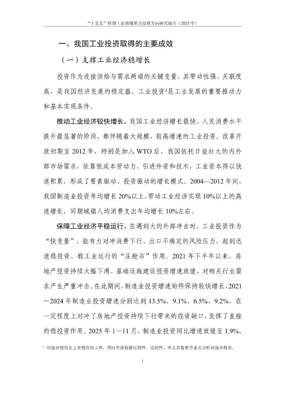 报告系统回顾分析我国工业投资取得的成效和存在的问题,立足“十五五”时期新形势新要求,提出“把握四个转变、用好三个策略、盯紧四类投资”的投资思路。通过定量与定性结合的方法,分类识别出工业领域重点投资方向,提出对策建议,旨在为扩大有效投资、加快构建现代化产业体系提供决策参考。
