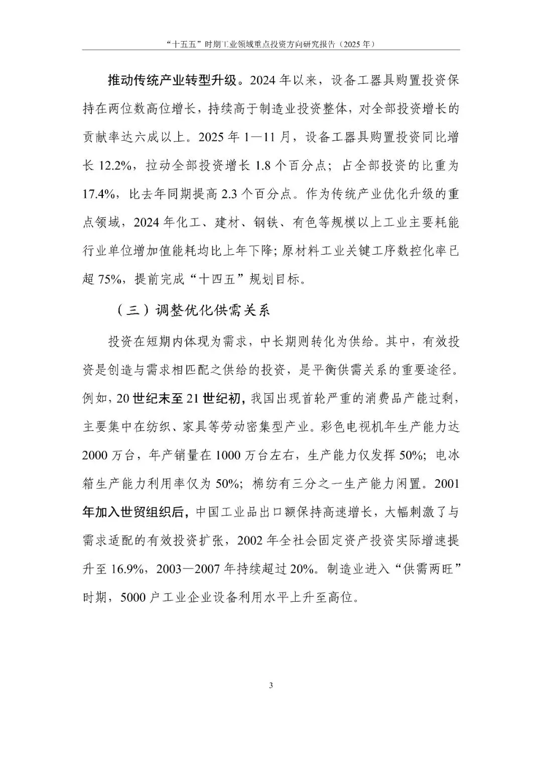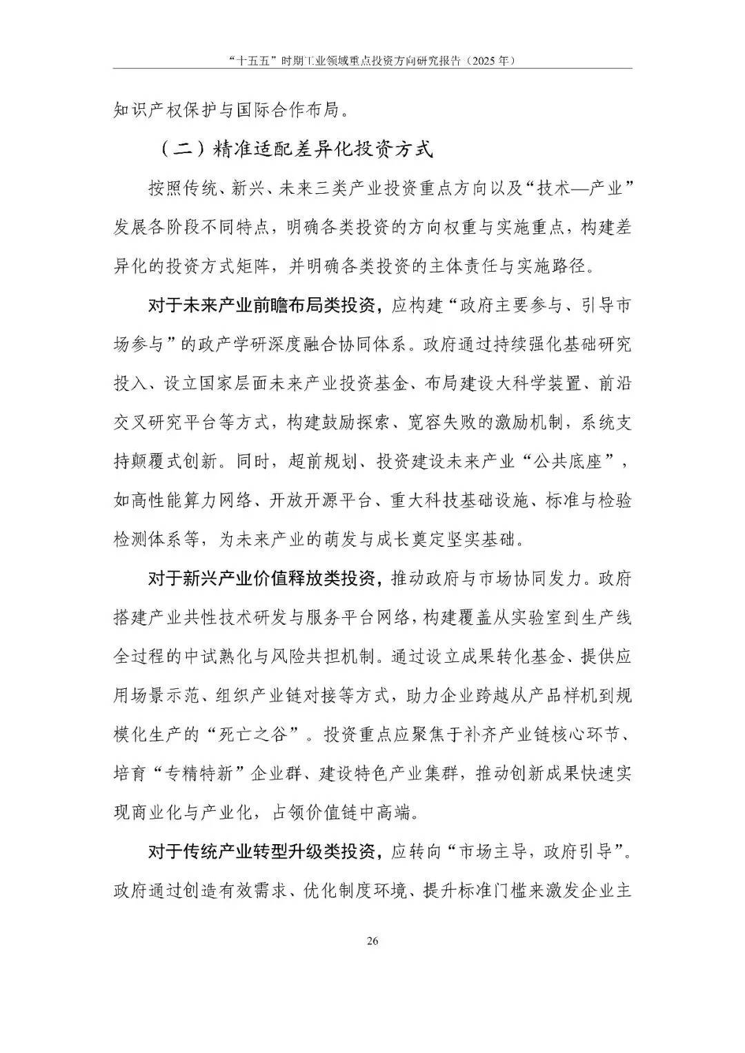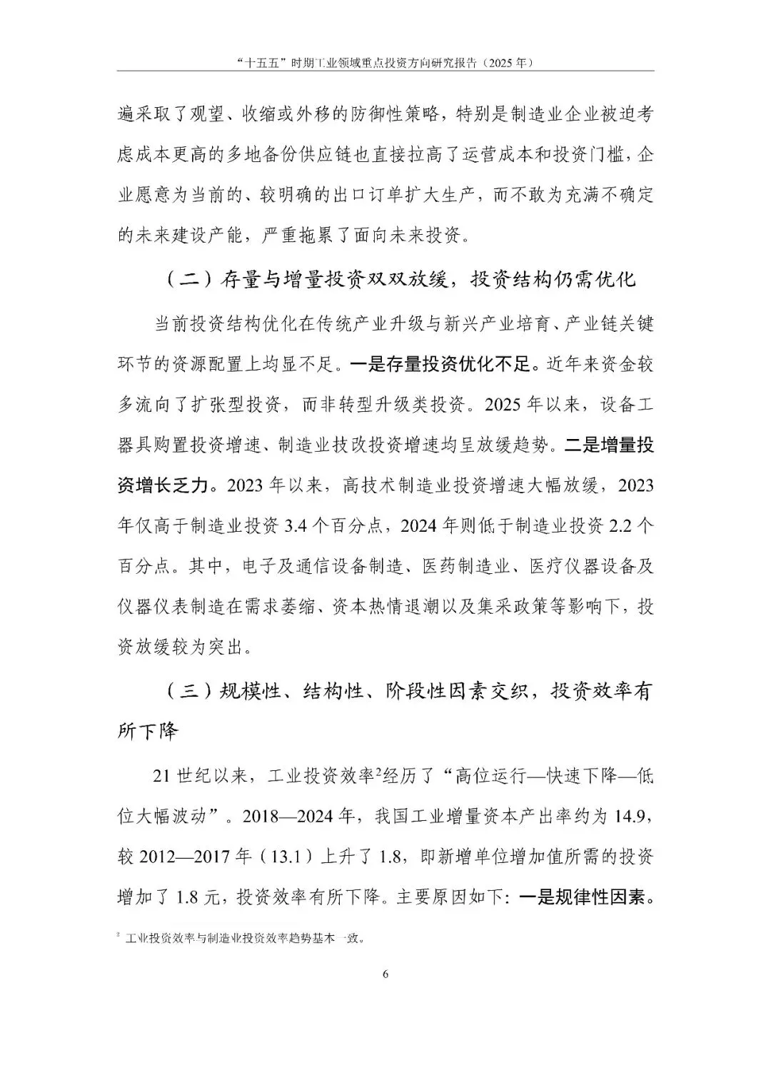 报告系统回顾分析我国工业投资取得的成效和存在的问题,立足“十五五”时期新形势新要求,提出“把握四个转变、用好三个策略、盯紧四类投资”的投资思路。通过定量与定性结合的方法,分类识别出工业领域重点投资方向,提出对策建议,旨在为扩大有效投资、加快构建现代化产业体系提供决策参考。