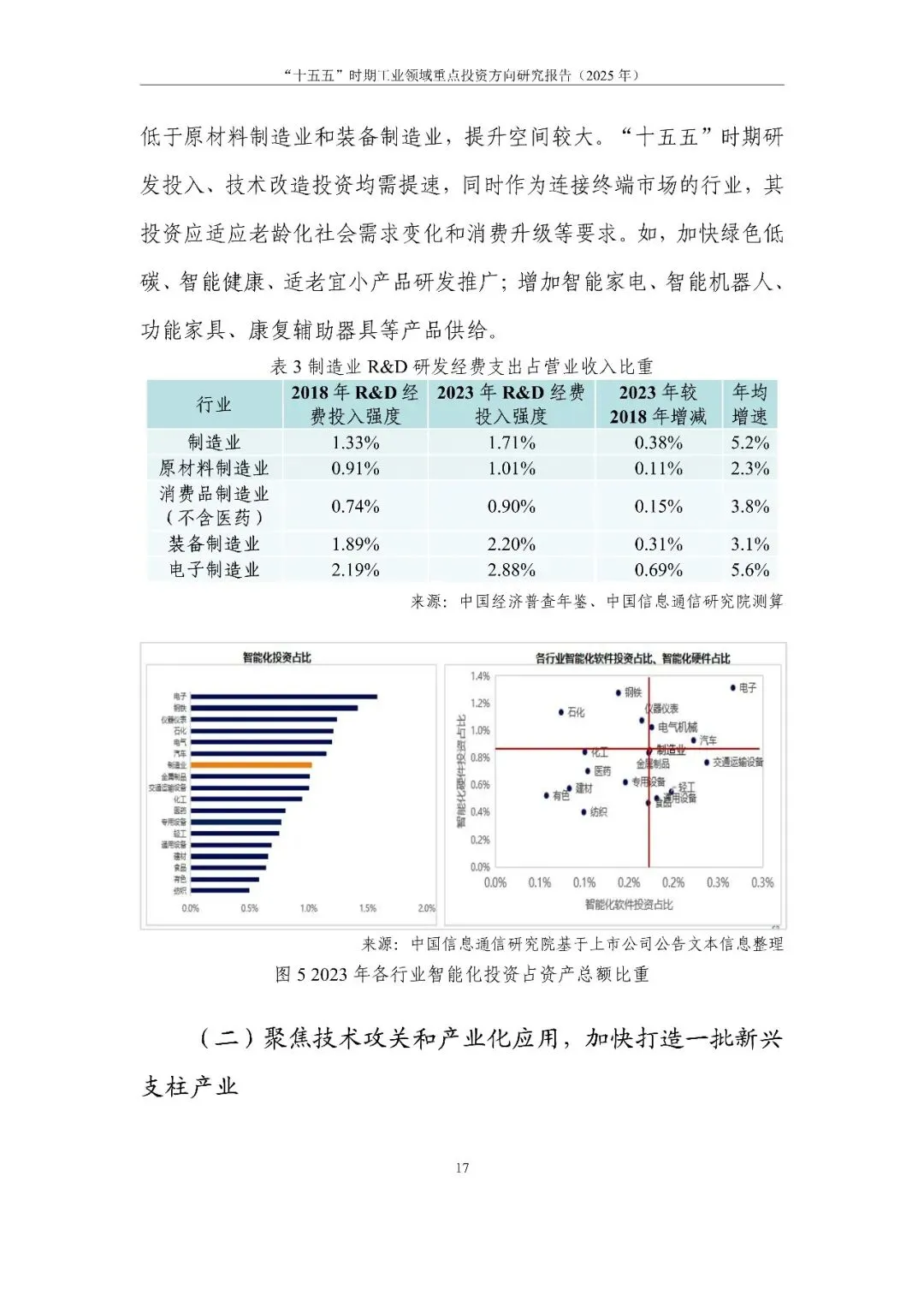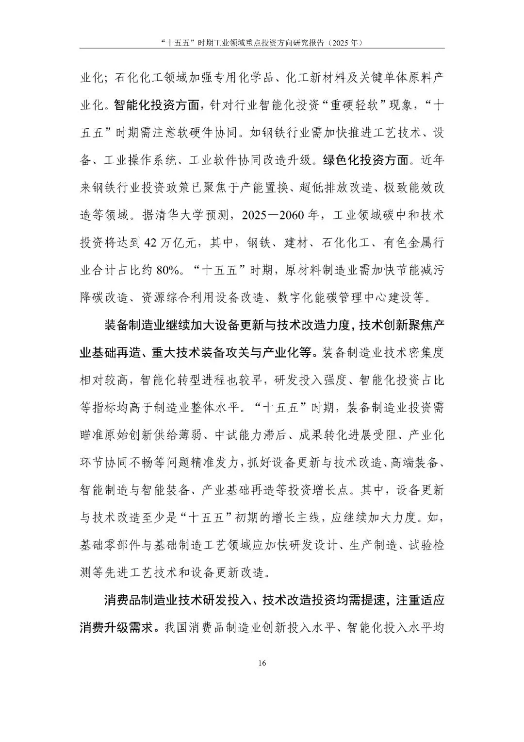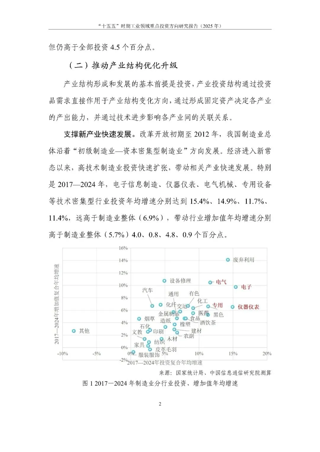 近日,中国信息通信研究院(简称“中国信通院”)信息化与工业化融合研究所发布了《“十五五”时期工业领域重点投资方向研究报告(2025年)》。
