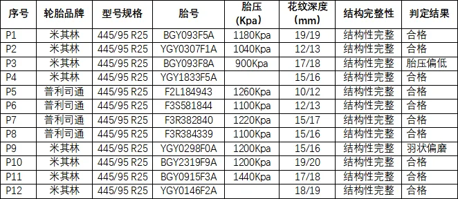 1. 定期检测校准胎压:每月至少检测一次胎压(冷态下测量更准确),不足时及时补充;长途行驶前、季节更替时需额外检查。目前我们推荐的445/95R25轮胎胎压为1100Kpa-1200Kpa