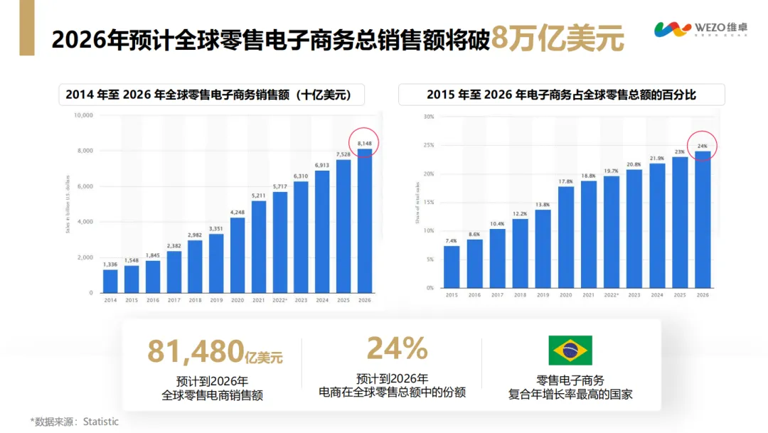 全球跨境电商持续扩容,2026 年预计突破 8 万亿美元规模,东南亚、拉美成为高增长核心区,新加坡、印尼增速超 30%。社媒电商成关键引擎,51% 的年轻用户通过社交媒体发现品牌,TikTok 用户节日购物参与度突出,40% 会购买平台推荐商品。大促季热门品类集中在时尚、3C 数码、美妆快消、家居家具,SHEIN、UNice 等品牌凭借社媒影响力领跑行业。