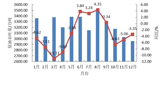 12月原油生产保持稳定,原油加工增速加快,原油进口同比微增。根据国家统计局的数据,12月规上工业原油产量1780万吨,同比下降0.6%;1—12月规上工业原油产量21605万吨,同比增长1.5%;12月,规上工业加工原油6246万吨,同比增长5.0%;1—12月规上工业原油加工量73759万吨,同比增长4.1%。根据海关总署统计数据,12月原油进口量为5597.3万吨,同比增长0.2%;1—12月原油累计进口量为57772.6万吨,同比增长4.4%。
