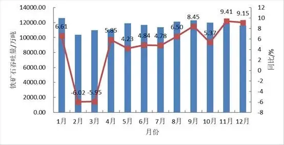 12月铁矿石进口同比微增。根据海关总署的统计数据,12月我国进口铁矿石11964.7万吨,同比增长0.1%。1—12月,我国铁矿石及其精矿进口量125870.9万吨,同比增长1.8%。