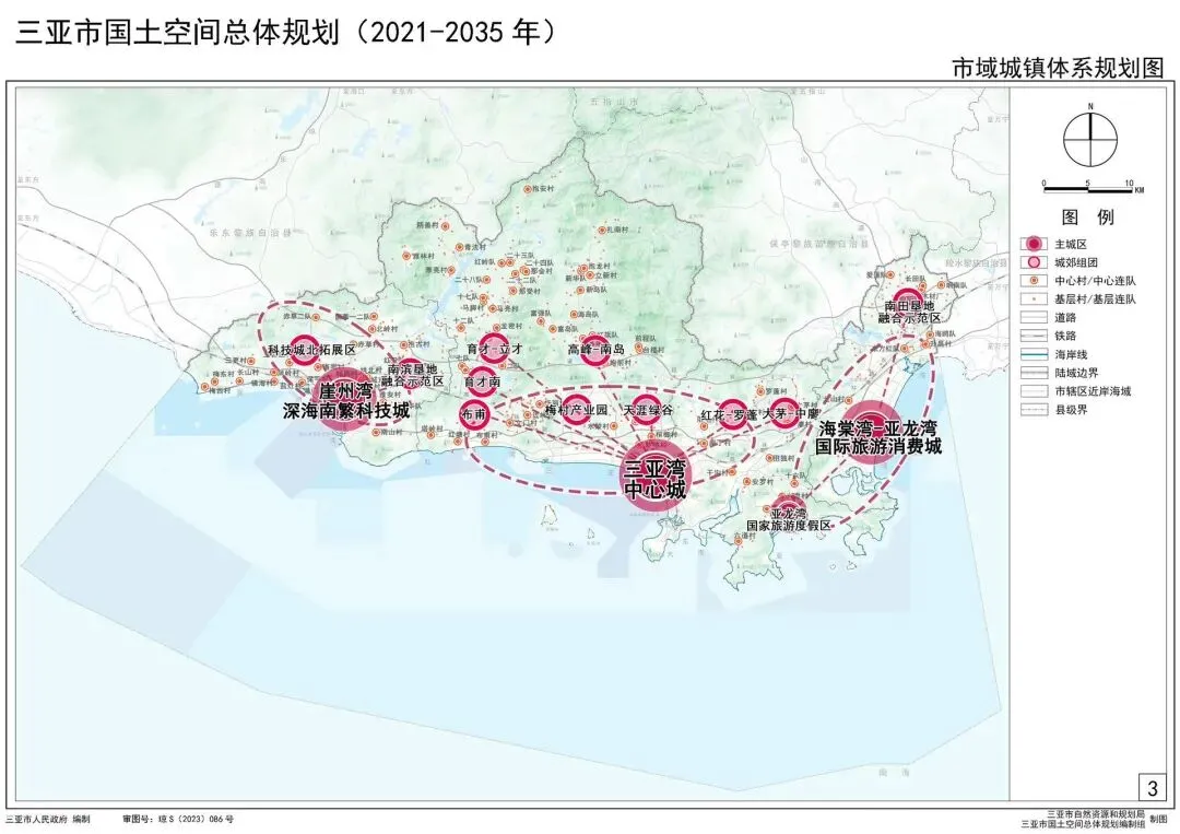 两带指依托亚龙湾的滨海旅游度假带和依托大茅水系的生态景观带;“多组团”则包括了红沙、海罗、荔枝沟等正在经历剧烈更新的城市片区。