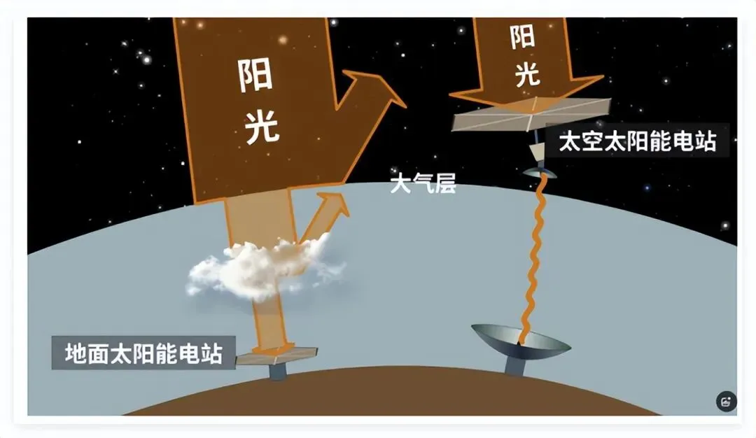 核心本质:是将光伏电池搬至外太空,利用AM0日照强度1367W/m²(较地面高30%以上)实现24小时不间断发电,通过无线传输或储能为卫星、空间站、轨道数据中心供电。