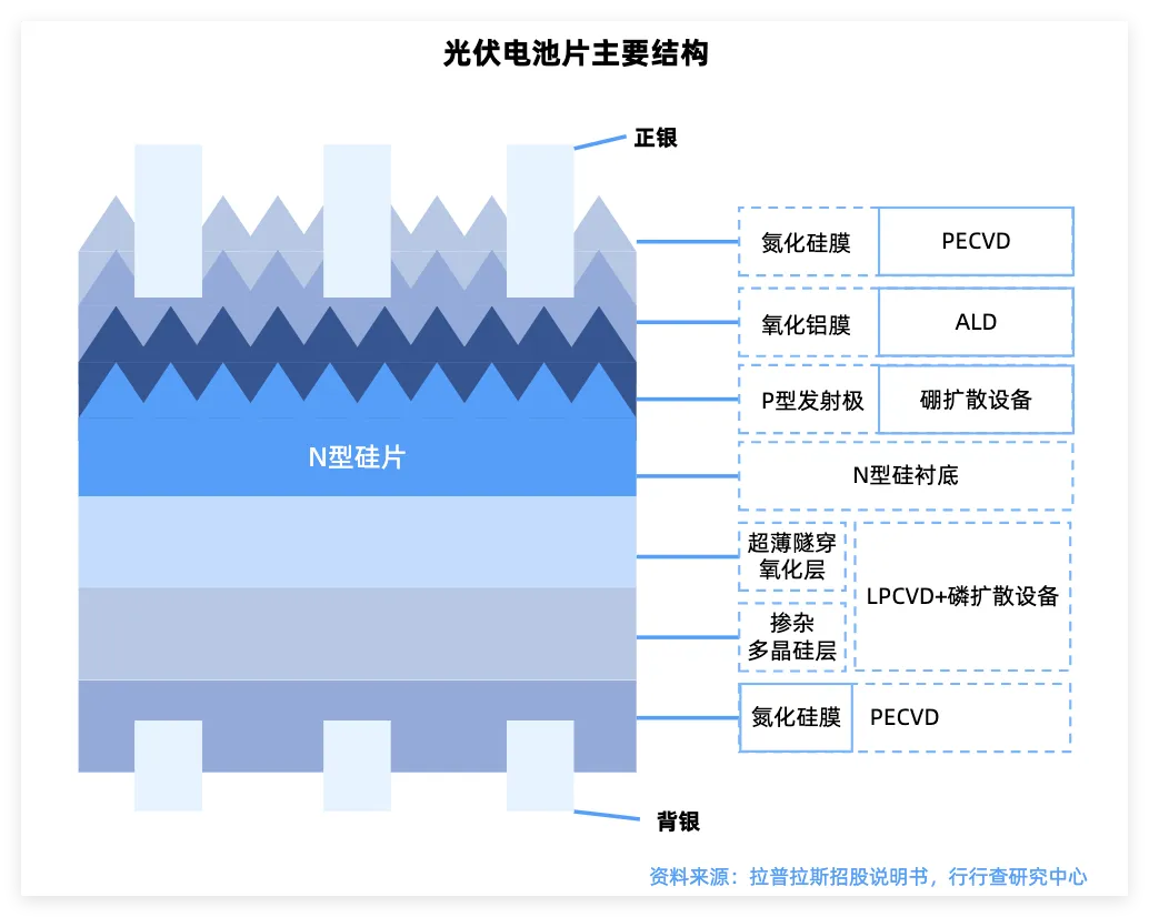 中游以电池片与组件制造为核心,整合砷化镓、P型HJT、钙钛矿叠层等多元技术路线,并延伸至太阳翼系统集成,同时包括MOCVD、PECVD等关键生产设备。