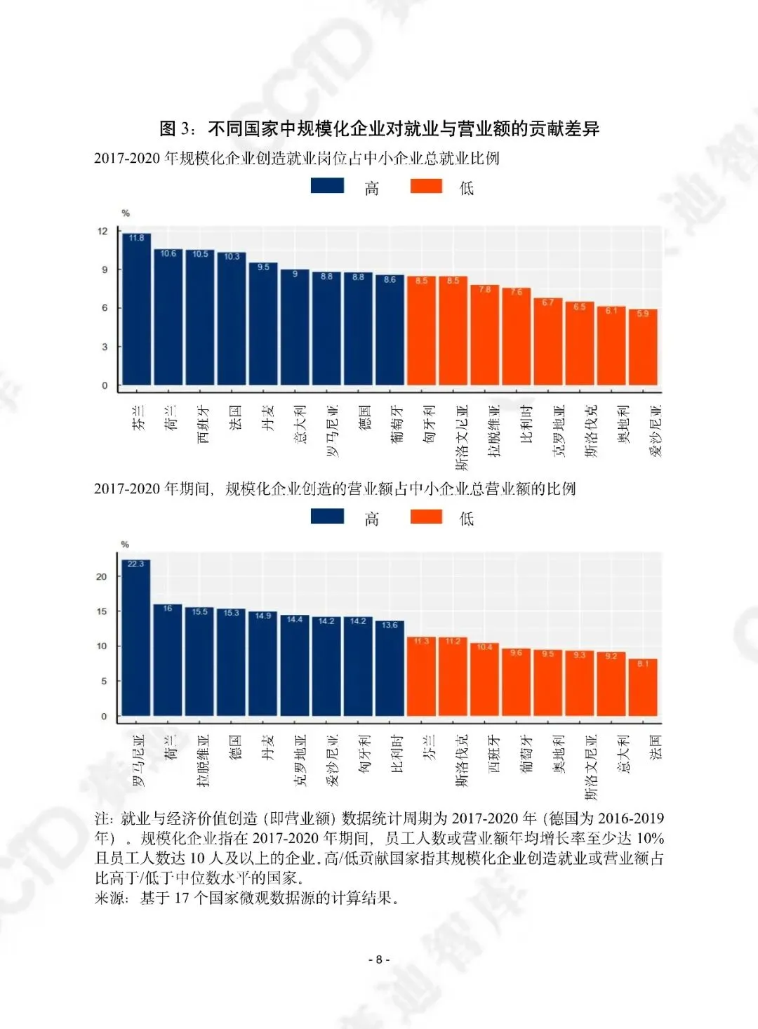 典型中小企业的规模发展趋势较稳定。经合组织数据显示,2011-2020年间,半数中小企业就业年增长率不足1%,营业额年增长率不足3%。但中小企业部门整体增长更快,平均增速高于 中位值,核心原因是少数高增长企业拉高了整体水平。