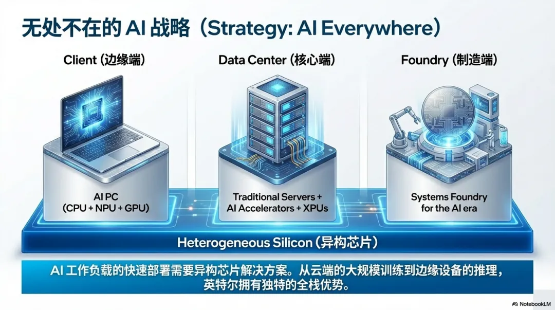 这背后是一种战略表达:别家可能只有一两件兵器,而英特尔希望自己是 AI 时代的“军火商”,提供完整军火库。