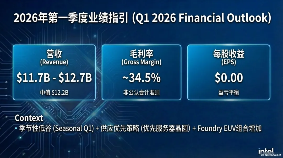 因此,英特尔对 2026 年第一季度给出了谨慎甚至偏悲观的展望: