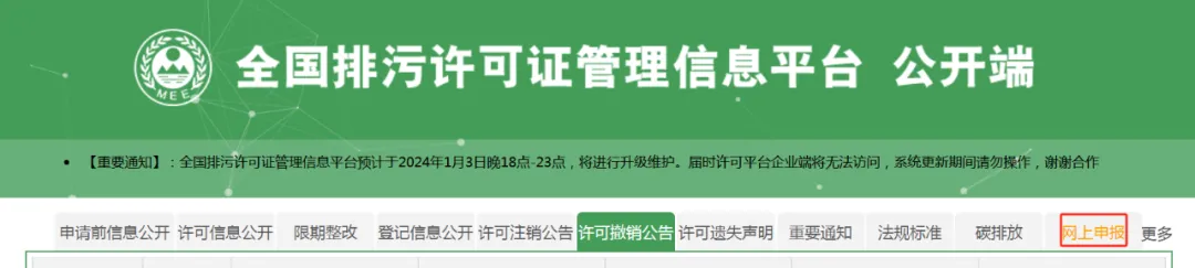 登录全国排污许可证管理信息平台:(http://permit.mee.gov.cn/)或搜索“全国排污许可证管理信息平台  公开端”,选择“网上申报”(图1),点击“执行报告”按钮(图2),完成2025年年度执行报告填报和提交工作。