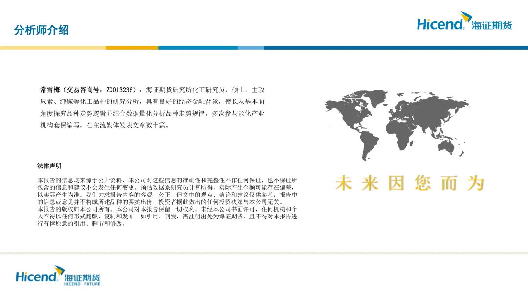 常雪梅(交易咨询号:Z0013236):海证期货研究所化工研究员,主攻尿素、聚烯烃等化工品种的研究分析,具有良好的经济金融背景,擅长从基本面角度探究品种走势逻辑并结合数据量化分析品种走势规律,多次参与能化产业机构套保档案编写,在主流媒体发表文章数十篇。