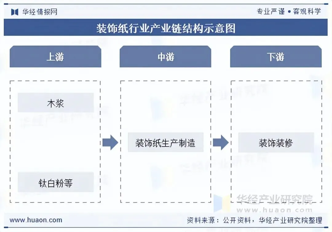 装饰纸上游行业为木浆、钛白粉等原材料行业,下游行业为提供产业链中间产品的浸渍装饰纸与人造板制造业,以及提供终端消费品的家具、地板与木门制造业,主要为装饰装修行业。