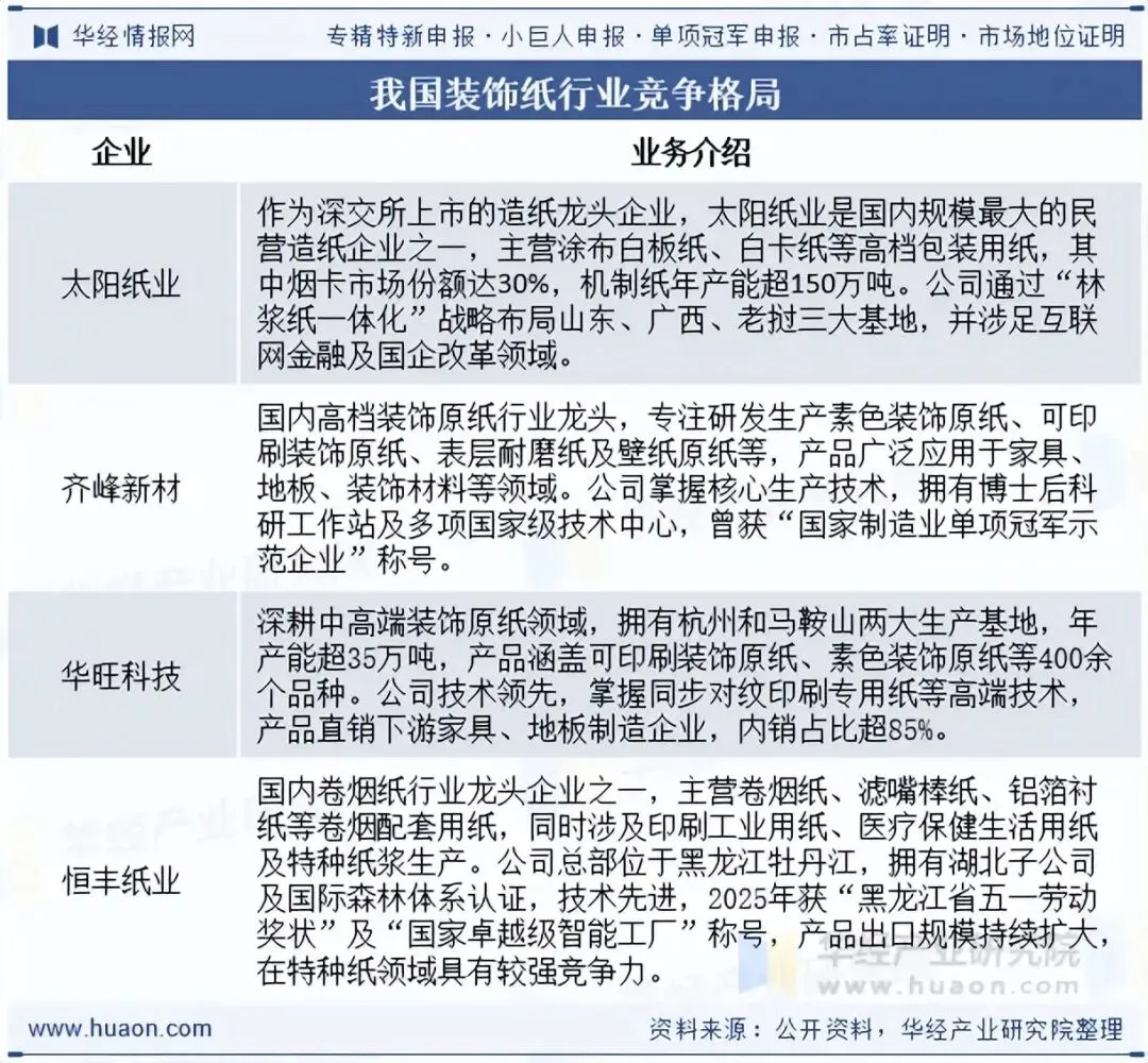 相关报告:华经产业研究院发布的《2026-2032年中国装饰纸行业市场调查研究及投资策略研究报告》