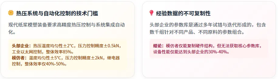 (3)技术壁垒的系统梳理,揭示纸浆模塑装备 "抄不好" 的本质原因;