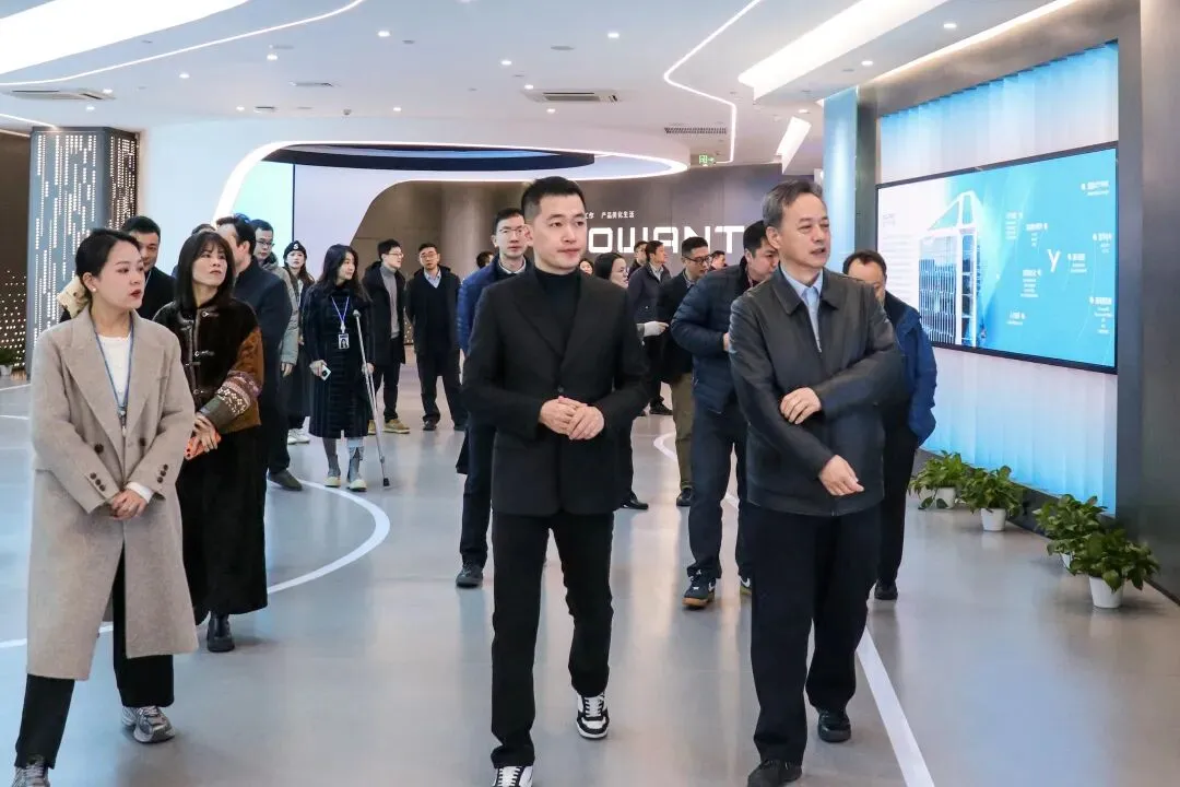 刘洪亮一行首先来到位于遥望科技总部三楼的遥望科技展厅,方剑向调研团介绍了遥望科技的发展历程、主营业务、企业文化、技术创新及在新消费领域的战略布局。方剑表示,遥望科技始终秉持“以科技赋能产业、以内容创造价值”的理念,不仅服务超 25000 家品牌,还成功孵化 Domyway朵薇、简芊、MBB等自有新消费品牌,并通过“遥望云AIOS”系统实现全链路数字化运营。