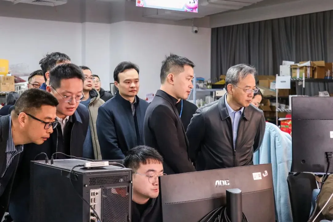 随后,考察团一行来到位于遥望科技总部五楼的“小桃盒”直播间,在这里,方剑向刘洪亮介绍,“小桃盒”直播间是行业中唯一的“全博士主播”直播间,主播团队覆盖材料科学、食品工程、生物医学等专业领域。他们不仅具备扎实的专业知识,还能以通俗易懂的方式为消费者解读产品成分、技术原理与使用逻辑,真正实现“专业内容+消费决策”的深度融合。