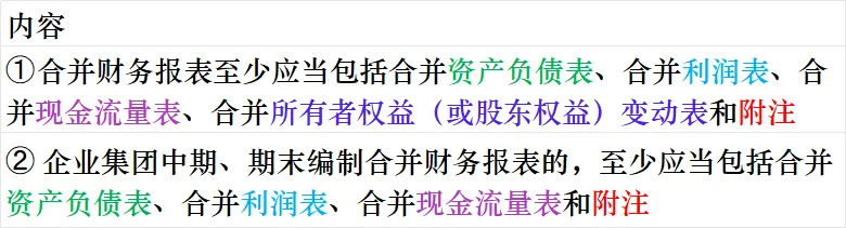 ➁企业集团中期、期末编制合并财务报表的,至少应当包括合并资产负债表、合并利润表、合并现金流量表和附注。
