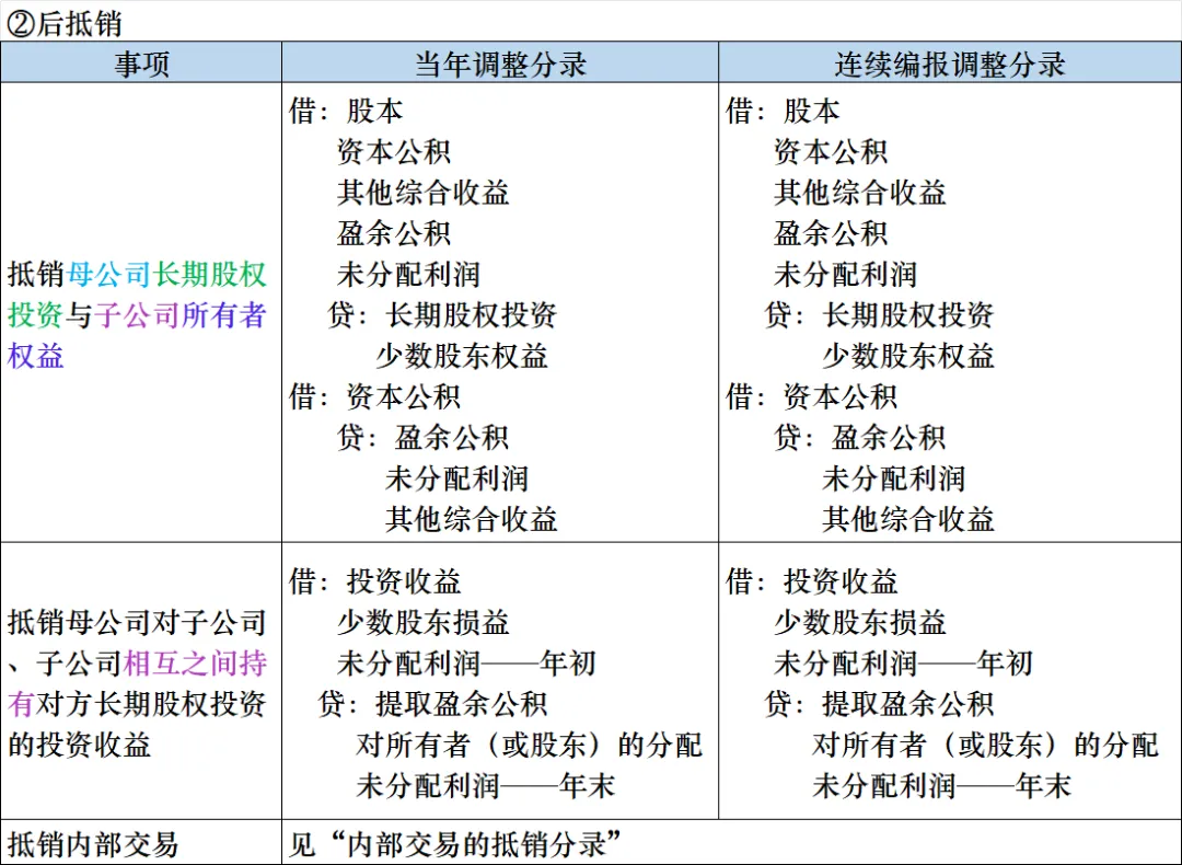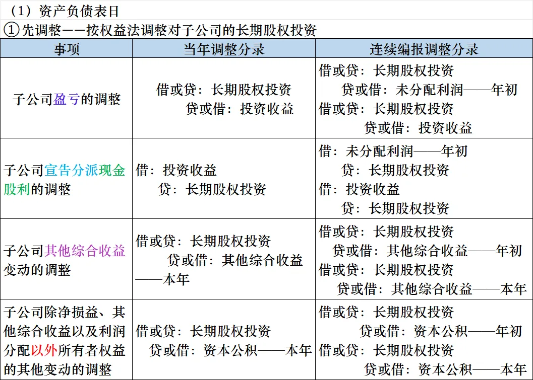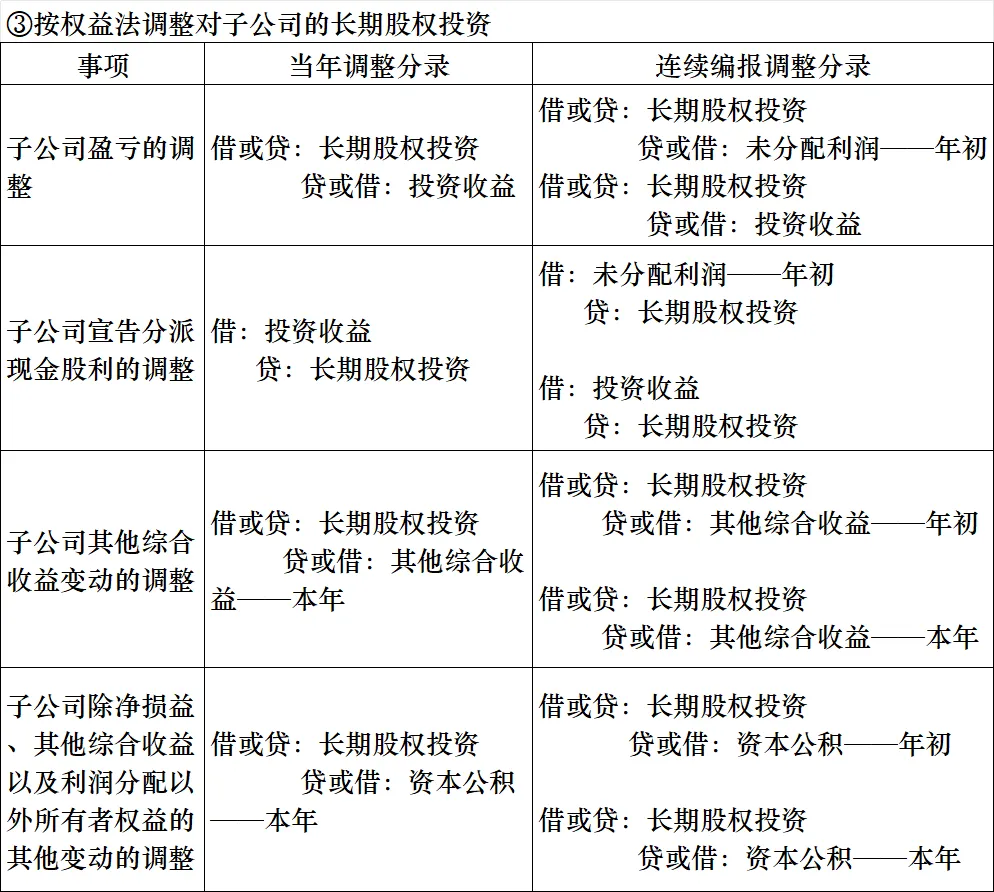 | 抵销母公司对子公司、子公司相互之间持有对方长期股权投资的投资收益 | 借:投资收益少数股东损益未分配利润——年初贷:提取盈余公积对所有者(或股东)的分配未分配利润——年末 | 借:投资收益少数股东损益未分配利润——年初贷:提取盈余公积对所有者(或股东)的分配未分配利润——年末 |